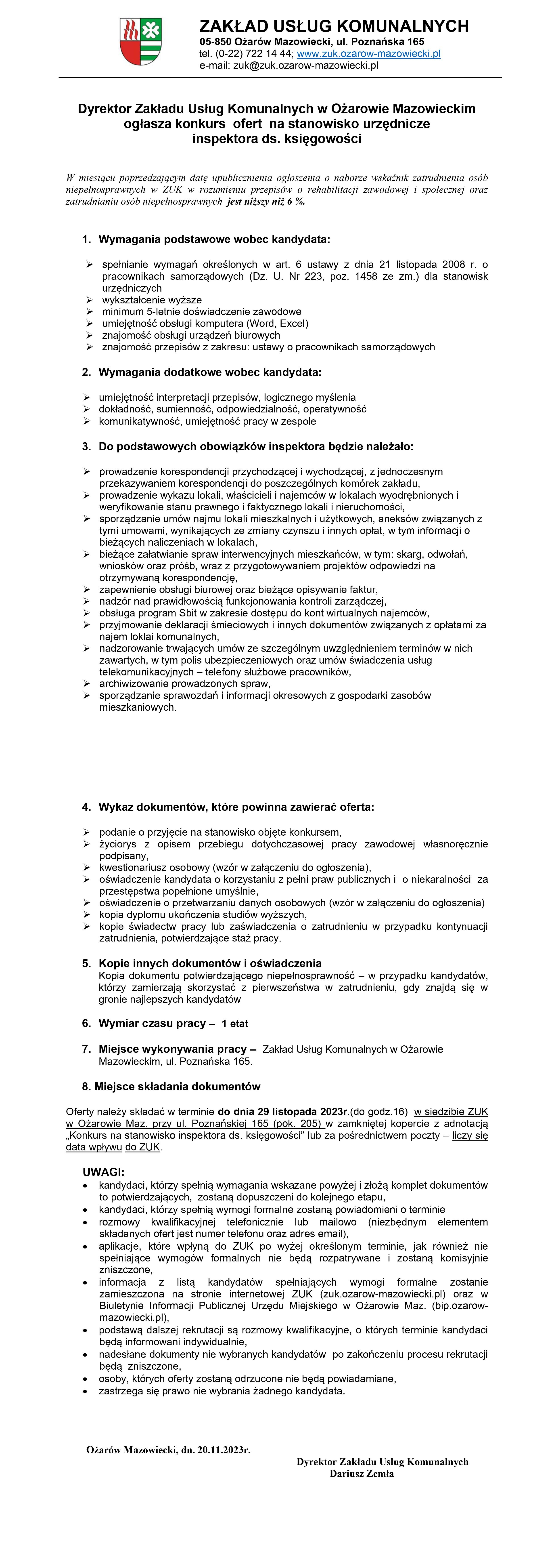 Ogłoszenia o naborze | Zakład Usług Komunalnych w Ożarowie Mazowieckim